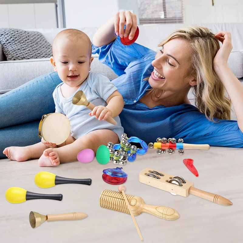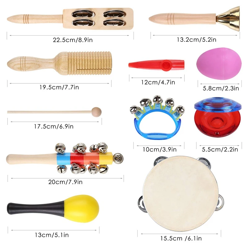 ABZB-15 Pcs Kids Musical Instruments Set Wooden Percussion Instruments Toy Early Learning Music Toy